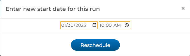 5) Enter the new start date and time for the order and press Reschedule