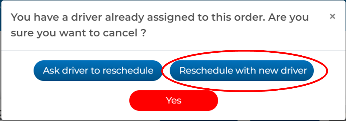 Reschedule with New Driver: This option removes the driver currently assigned to your order and notifies all of the available drivers in your area that you order is now available to accept again. You will typically use this option if the starting date and time had to change, and your current driver was not able to accommodate that change. Rescheduling your order with a different driver does not penalize the current driver that is assigned to the order.