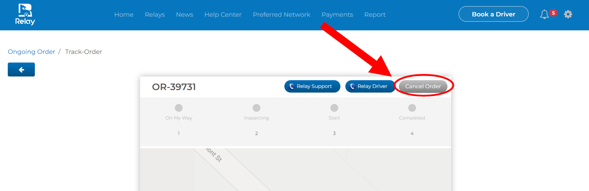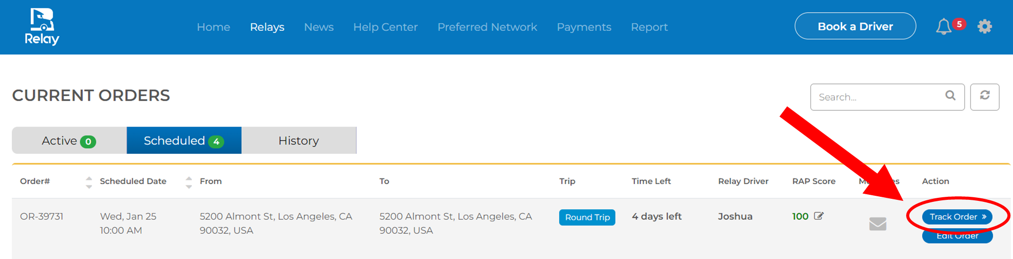 2) Click Track Order on the Relay order you need to adjust