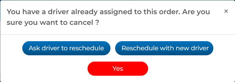 Yes: This option fully cancels the order. This option should only be used in situations where there are no other alternatives for a different start date/time. Orders that are cancelled after the driver has marked themselves as on their way to your truck are charged a cancellation fee.