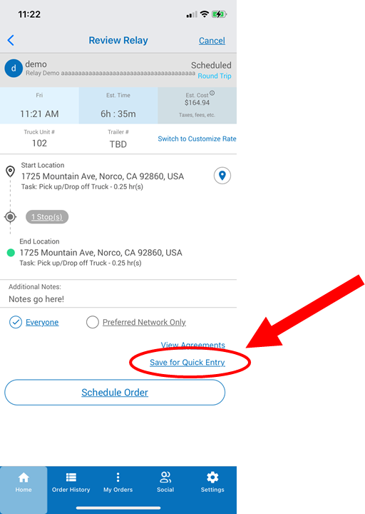 2) On the 'Review Relay' screen, click 'Save for Quick Entry':